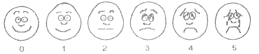 0:全く痛みがなくとても幸せ 1:ちょっとだけ痛い 2:それよりも少し痛い 3:もっと痛い 4:かなり痛い 5:必ず泣くほどではないが、想像できる最も強い痛み |